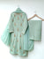 Step into refined elegance with this women’s semi-formal 3PC suit crafted from luxurious raw silk, featuring a 47-inch shirt with fully handmade sequin work.